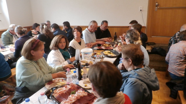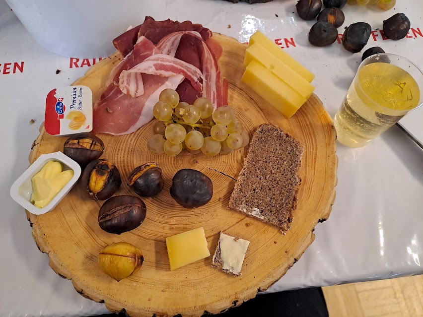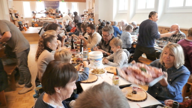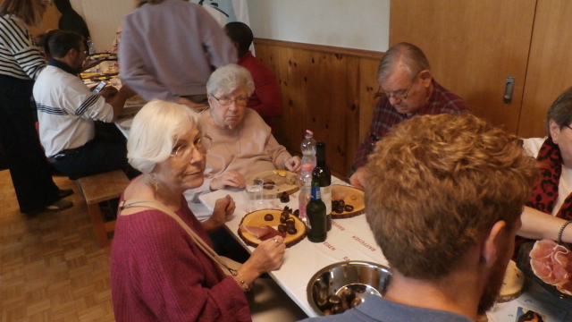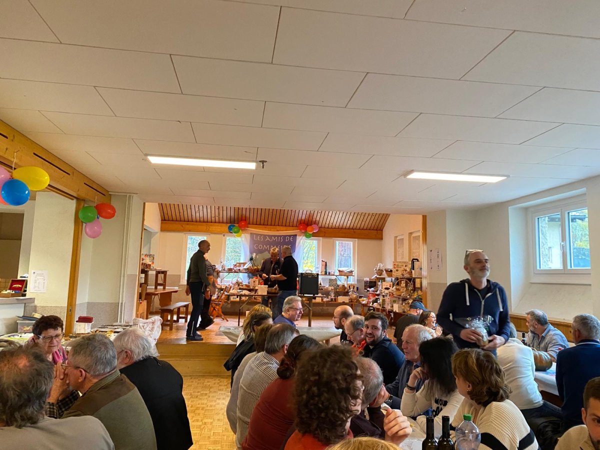 Nous remercions chaleureusement Roland Metral pour cette présentation captivante. Depuis son intervention, nous regardons le Catogne avec un autre regard. Il nous a rappelé que si des arbres disparaissent, la forêt, elle, demeure. Pour la Brisolée, nous avons pu compter, comme d’habitude, sur la famille Salamin de Saint-Luc, qui nous a livré les planchettes destinées à accueillir fromages, charcuterie, raisin et tartes aux pommes, accompagnement généreux des châtaignes. La tombola, rendue possible grâce à la générosité des donateurs et de plusieurs membres de l’association, a une nouvelle fois été exceptionnelle. Nous pensions qu’il serait difficile de faire aussi bien que l’an dernier, mais le défi a été relevé.